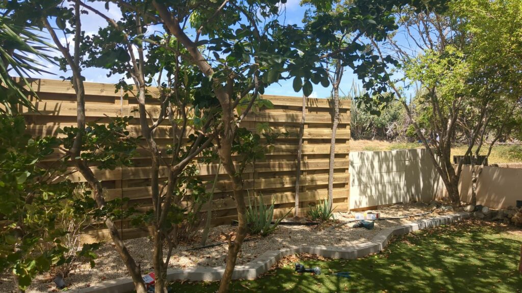 In eerste instantie weten we niet wat we met de tijd aan moeten, maar de dagen vliegen voorbij. Veel gezelligheid en ook een beetje werken. Vrijwilligerswerk voor Jacomien en ik repareer nog wat kites. Samen bouwen we een schutting in de tuin van ons huis, want de huurders hebben last van de werklui die de hele dag over de (toen nog lage) schutting hangen en de tuin in staan te loeren. Ja, dat lijkt ons ook bijzonder irritant!
