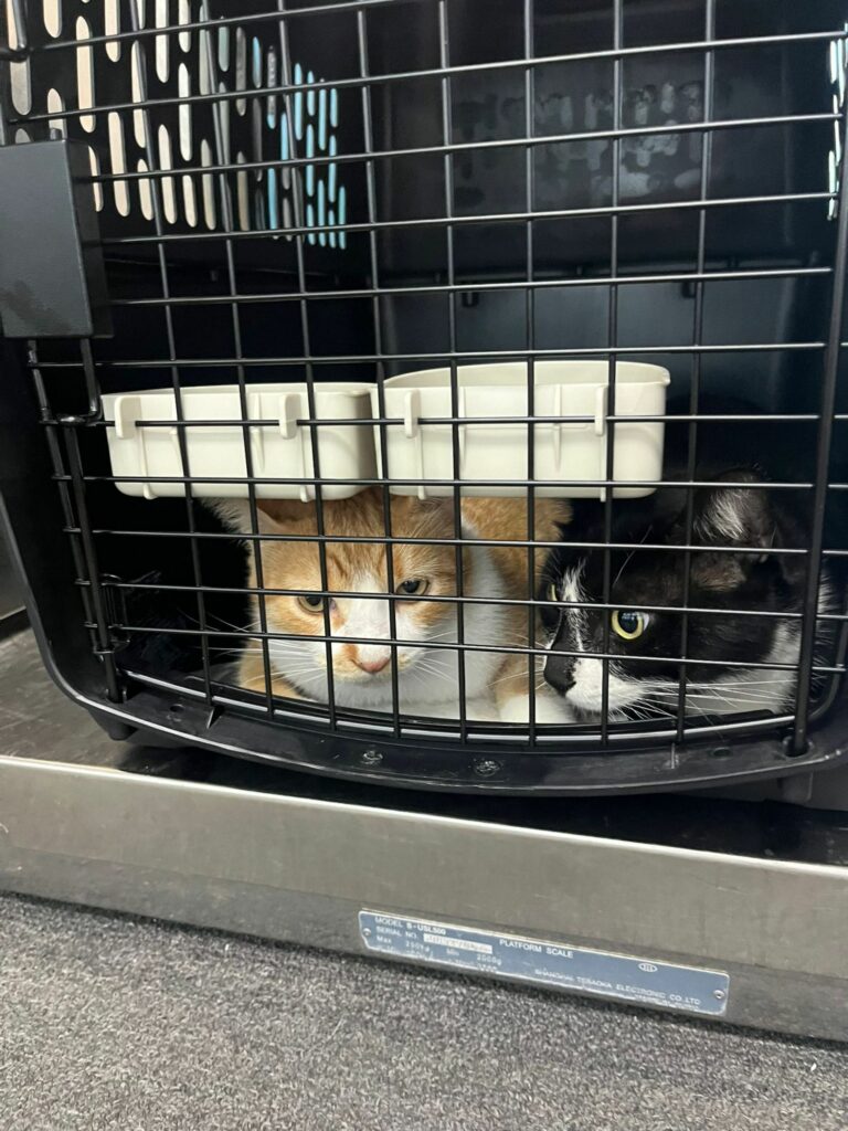 KLM gooit er nog een eigen een schepje bovenop en begint moeilijk te doen. KLM heeft onlangs de prijzen voor dieren sterk verhoogd. Ze mogen wel samen in een bench, zoals vermeld op de website… Maar KLM meldt dat het dan nog steeds 400 euro per kat om te vervoeren enkele reis naar Amsterdam….. WAT?! Wat is dan het voordeel om ze samen in een bakkie te stoppen? Het is ff slikken, maar na een tijdje stemmen we in…. Het is dan maar niet anders, ze kunnen ook zo niet blijven. Op de dag van vertrek lopen we nog tegen iemand van de kattenstichting aan waar Jacomien soms werkte. “Nee, hoor wij stoppen er wel eens 3 in er bench… voor 400 totaal…”. Okay KLM, get your shit together! Het duurt daarna nog een week voor het allemaal geregeld is, en gaat nog 3x fout (en nog 6 andere dingen bij de dierenarts enzo), maar Flo & Goofy hebben nu een leven in Amersfoort (en Jacomien 20 grijze haren erbij :-)!